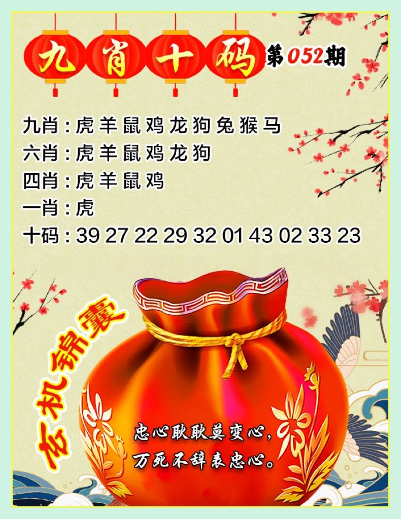 | 052期 | 虎 鼠 羊 鸡 马 狗 猪 | 开:????? |